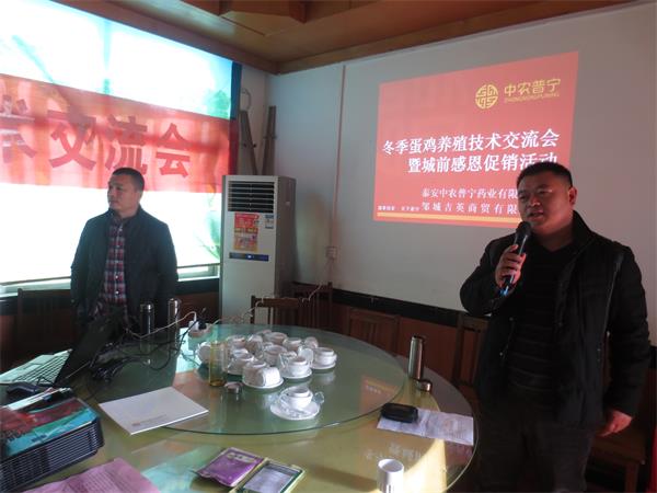 公司營銷總監(jiān)劉總、技術(shù)總監(jiān)王總、吉英商貿(mào)劉總等參加了本次活動。會上王總結(jié)合當(dāng)前實(shí)際情況,給廣大養(yǎng)殖戶朋友們講解了一場生動、實(shí)用的一堂課;隨后王總對蛋雞寶產(chǎn)品及公司新開發(fā)的幾個產(chǎn)品做了重要講解并與大家互動交流,特別針對大家養(yǎng)殖中的難點(diǎn)困惑給予了詳細(xì)解答。會后大家紛紛表示本次學(xué)習(xí)交流會受益匪淺。