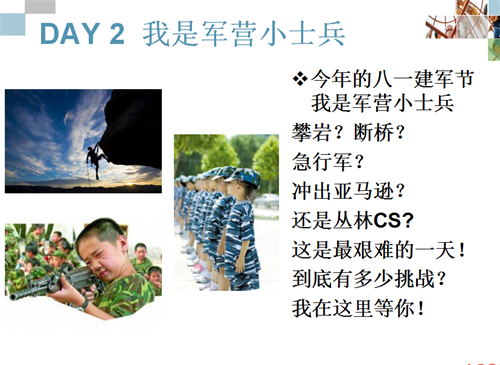1、超越恐懼 2、培養(yǎng)勇敢 3、團(tuán)隊(duì)精神 |