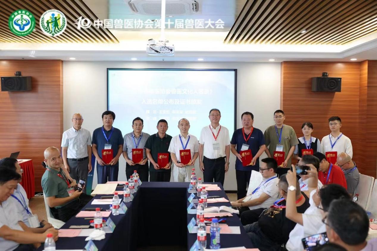 會(huì)議在熱情洋溢的氛圍中進(jìn)行,中國獸醫(yī)協(xié)會(huì)常務(wù)副會(huì)長辛盛鵬致辭后,會(huì)議公布了備受關(guān)注的《中國獸醫(yī)協(xié)會(huì)獸醫(yī)文化人名錄(第一批)》入選名單,山東中農(nóng)普寧藥業(yè)有限公司技術(shù)總監(jiān)王金紀(jì)等八人因在獸醫(yī)文化事業(yè)中做出的杰出貢獻(xiàn),成功入選第一批名單。