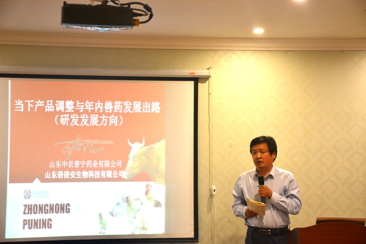 接下來,公司技術總監(jiān)王金紀帶來了《當下產品調整與年內獸藥發(fā)展出路》的技術報告。王總介紹了當前公司產品的架構,分析了目前獸藥行業(yè)面臨的問題,同時基于公司未來的發(fā)展,王總給出了公司產品接下來的研發(fā)方向,只有緊跟市場,不斷推陳出新,才能始終保持公司產品的市場競爭力。