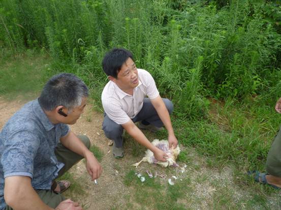 7月19日,公司總經(jīng)理康總、技術(shù)總監(jiān)王總與湖北省京山縣錢場(chǎng)養(yǎng)雞協(xié)會(huì)達(dá)成合作協(xié)議之后,又立刻奔赴湖北蘄春縣一家蛋雞場(chǎng)做技術(shù)指導(dǎo)。經(jīng)過(guò)細(xì)致觀察,耐心尋問,剖檢,最終找出了發(fā)病原因,及時(shí)將蛋雞場(chǎng)的損失降到了最低。
